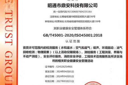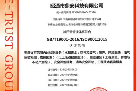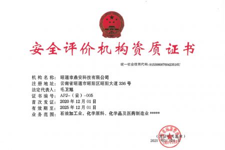 2003年11月10日,昭通市鼎安科技有限公司成立,初始主要從事第三方安全工程技術服務,經多年運營,發(fā)展為多專業(yè)綜合科技平臺,為社會提供多種專業(yè)技術服務工作。 現公司注冊資金為1200萬元,公司法定代表人:毛衛(wèi)旭。公司主要業(yè)務:安全評價、安全標準化評審、安全工程技術服務;環(huán)境監(jiān)測、職業(yè)衛(wèi)生檢測、檢驗;法律訴訟及非訴訟服務;司法鑒定、固定資產投資項目節(jié)能服務;工程咨詢;工程測量測繪;安全教育培訓等。是安全生產服務、安全教育培訓機構,也是環(huán)境監(jiān)測和職業(yè)衛(wèi)生服務機構,同時也是綜合的檢測檢驗、綜合科技平臺服務機構。多年來為公、檢、法、司、軍、警、海關、仲裁、安監(jiān)、工礦商貿企業(yè)、社會團體及個人提供多專業(yè)技術服務。